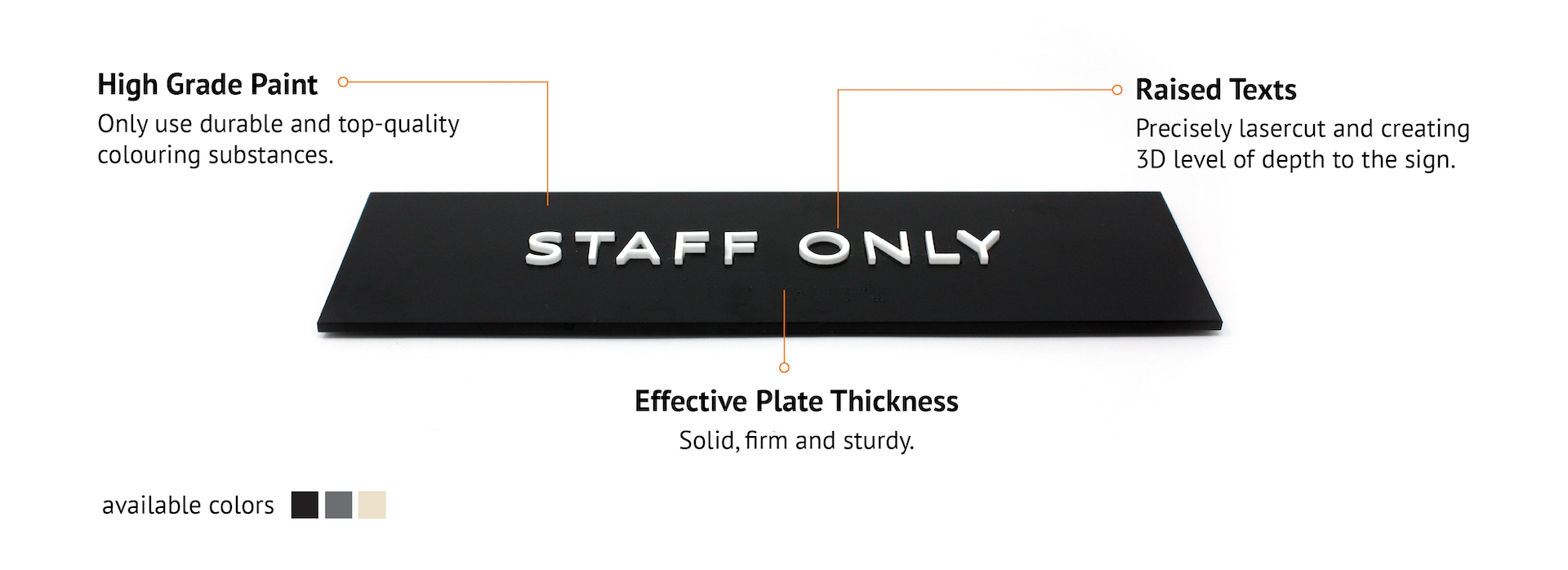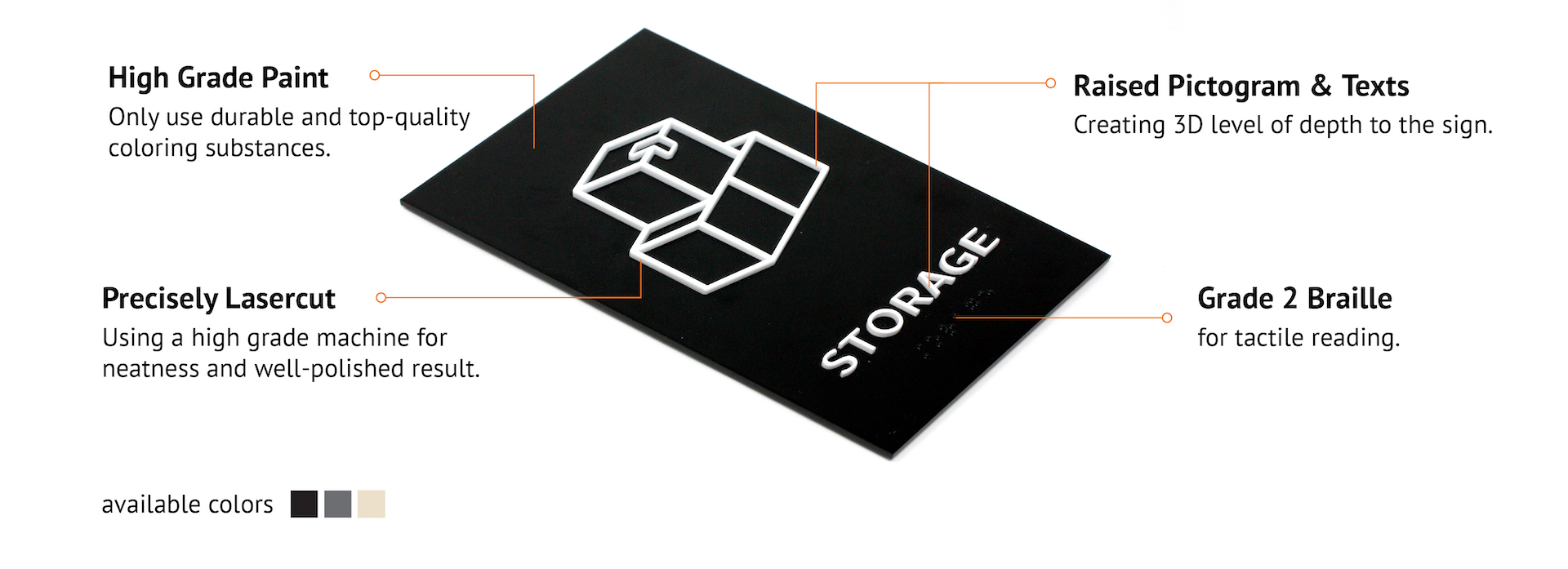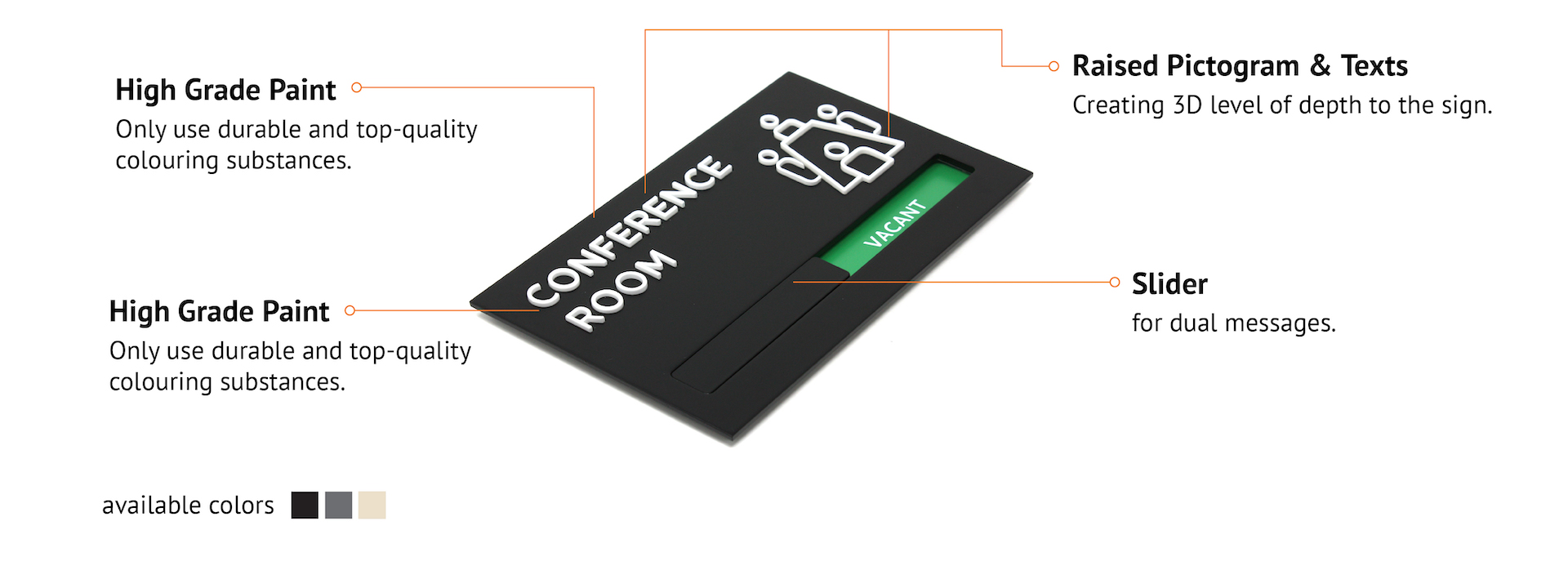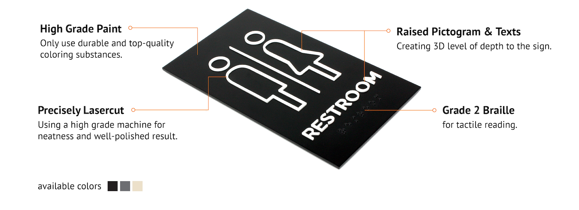 Create a whole minimalist look for your space with our legible and communicative signage.